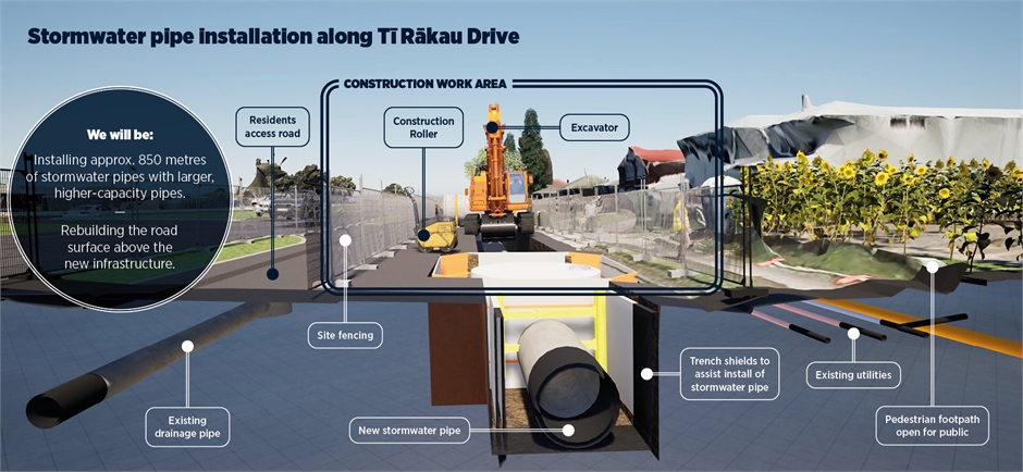 • Duration: Approximately 5 weeks of disruption per property along Tī Rākau Drive ( towards Botany) as work progresses